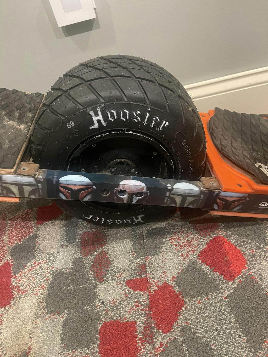 "The T2 6” treaded OneWheel tire that FlightFins developed, designed, and tested is not to be confused with any other 6 inch treaded Kart tire Hoosier sells. The T2 is superior in its build quality and made special for the Onewheel. The custom compound and structure are unique and unlike any other kart tire in Hoosier’s lineup.” -Hoosier Tire